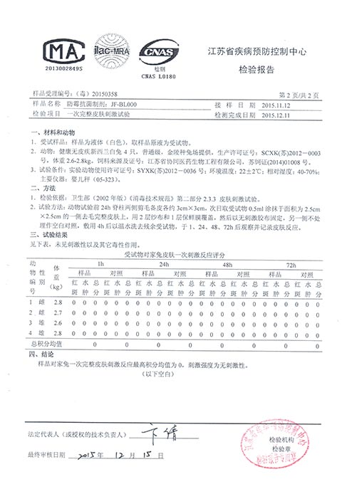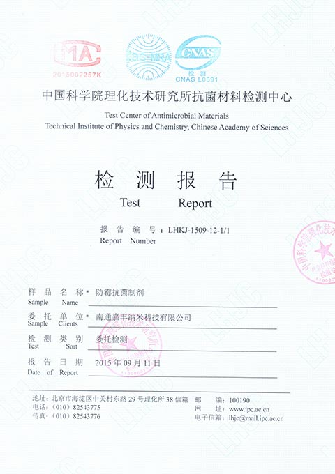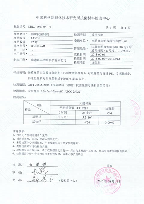 防黴抗菌制(zhì)劑JF-F125檢測報告1.2
