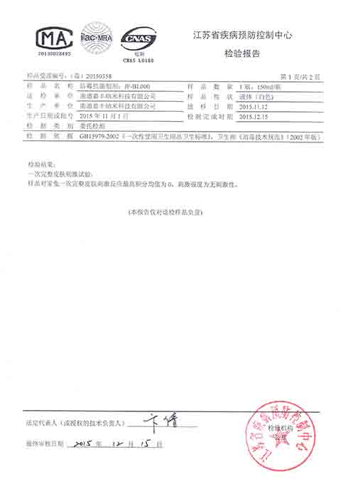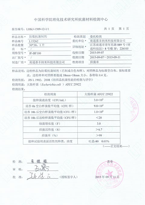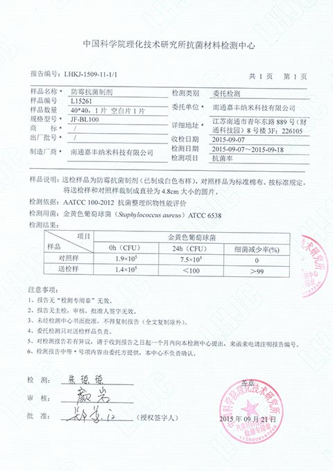 防黴抗菌制(zhì)劑JF-BF100檢測報告B6.1