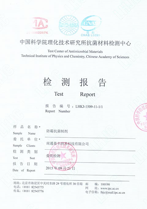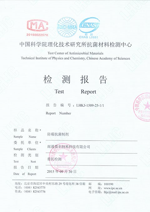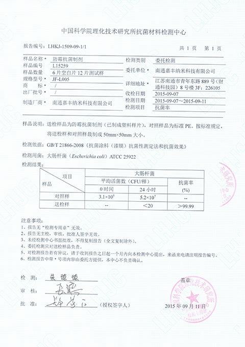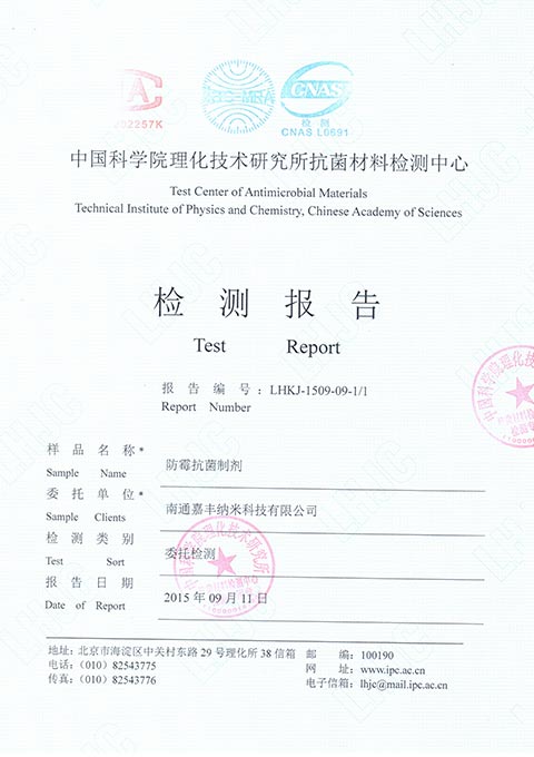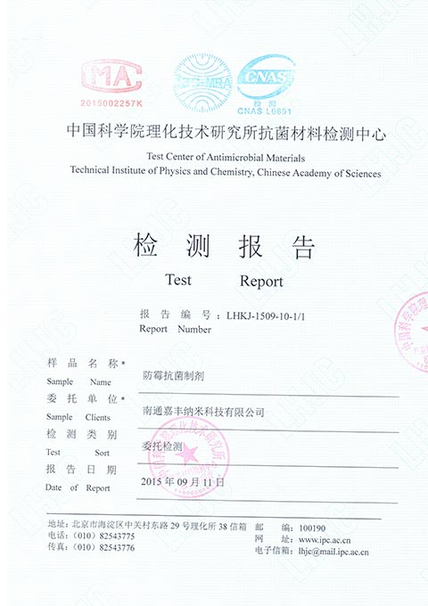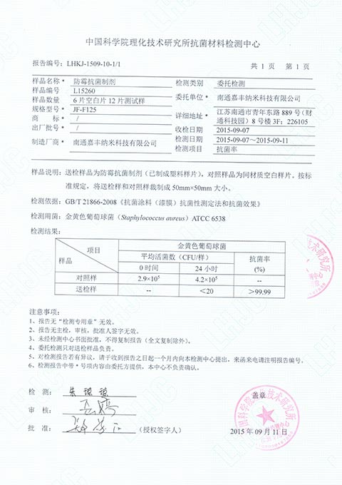 防黴抗菌制(zhì)劑JF-F125檢測報告1.1